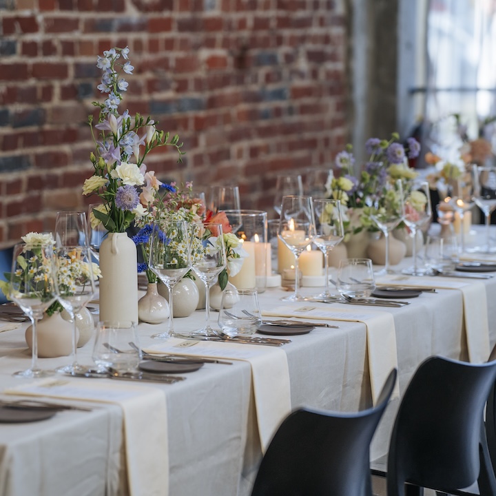 For the décor at your events, we try our best to avoid disposable and plastic items, and use arrangements made of plants native to Germany and seasonal flowers. Our tip: new purchases often aren’t necessary, since we have great recommendations from our pool of service providers who can rent you the perfect decorations for your event. The imagination knows no limits... especially if you mix & match.