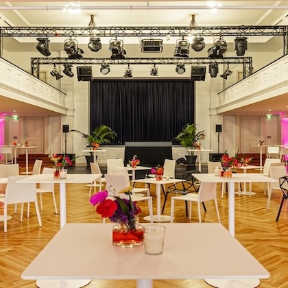 Our DEINspeisesalon event location comes with built-in big-city atmosphere. High ceilings, rooms bathed in light and our characteristic exposed-brick wall complete the urban flair. Plus, there’s our outdoor area with its gorgeous plant and large terrace. Curious?