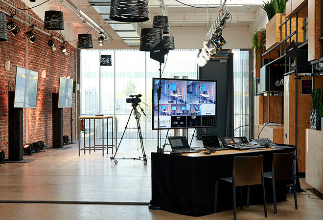 Looking for a really characteristic and equally functional streaming location? For webcasts, digital and hybrid conferences or streaming gigs – our daylight-flooded event location can easily be transformed into your very own set. Our authentic exposed-brick wall is a real highlight, creating the perfect backdrop. Thanks to our wide-ranging pool of service providers, we can also recommend top contacts for tech, props and decoration, if necessary.
